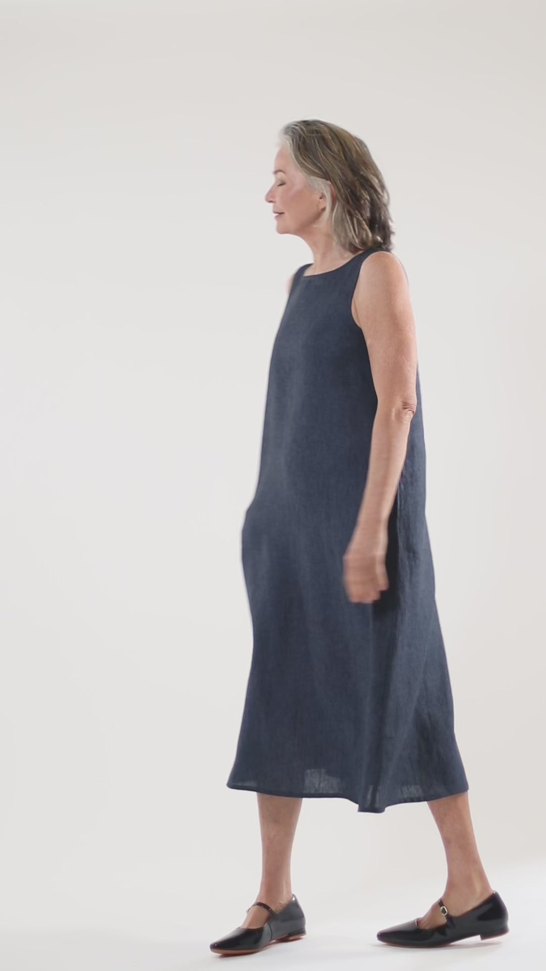 The Essentials Collection Asher Dress in navy linen is a simple style worn alone and a wonderful base to build a layered look. The neckline is a classic boat shape. A wide cut over the shoulder ensures comfort and ample bra coverage. The Asher Dress is based on the popular Asher Top.