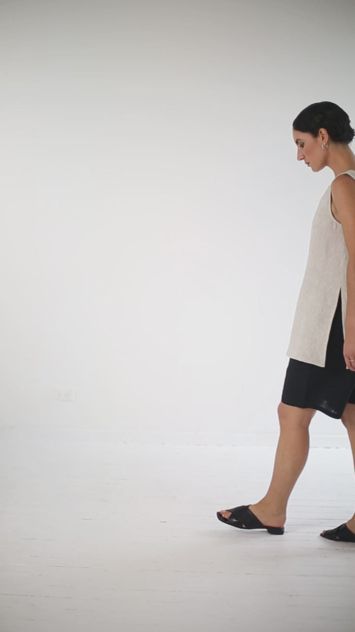 The Asher Top is beautiful worn on its own as a simple sleeveless top. It also makes a perfect layer when worn under a jacket, dress or open shirt.