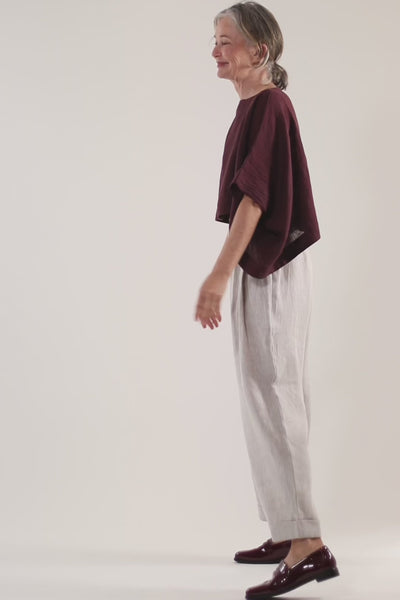 The Essentials Collection Charlie Pant in neutral linen is a nod to classic men's tailoring. It has a flat front waistband with belt loops, high-quality hook-and-eye hardware and a button fastening. Wide elastic at the back provides a secure and comfortable fit and there is a pleat detail at the front.