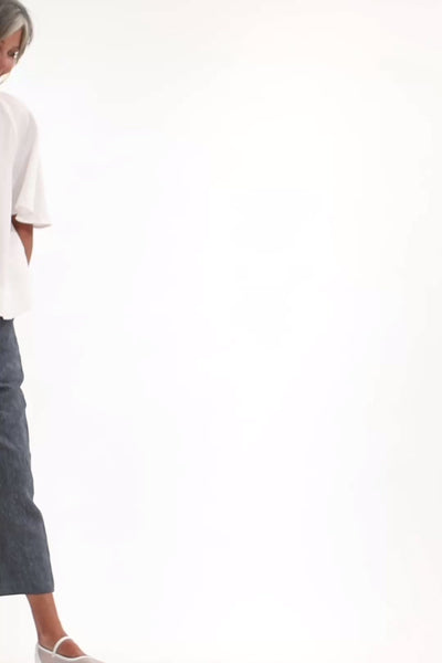 The Gaynor Top is a floaty, elegant piece crafted from lightweight, crisp White pure linen. Its relaxed A-line drape is anchored by a stand collar with a delicate necktie, offering versatile styling options.