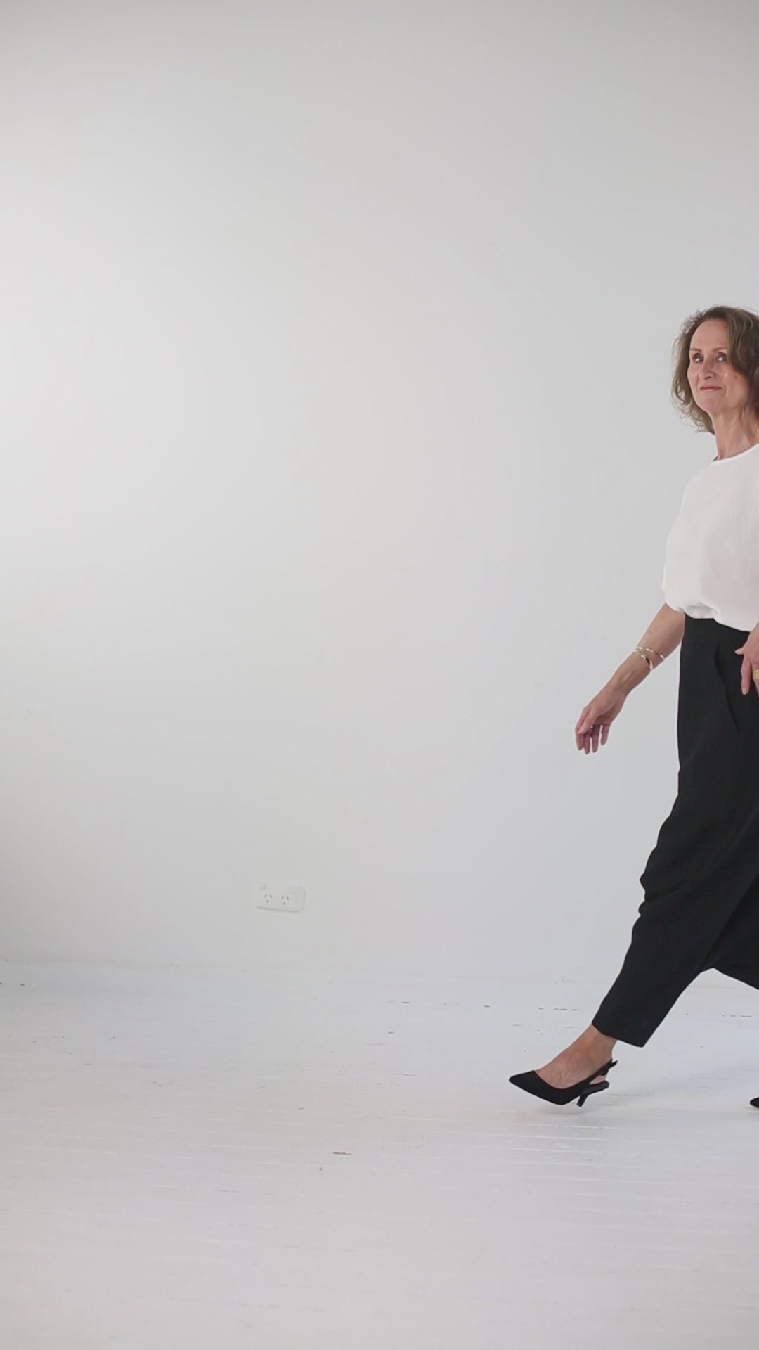 The back waistband is elasticised for ease & wearability. Lovely deep pockets disappear into the side seam.