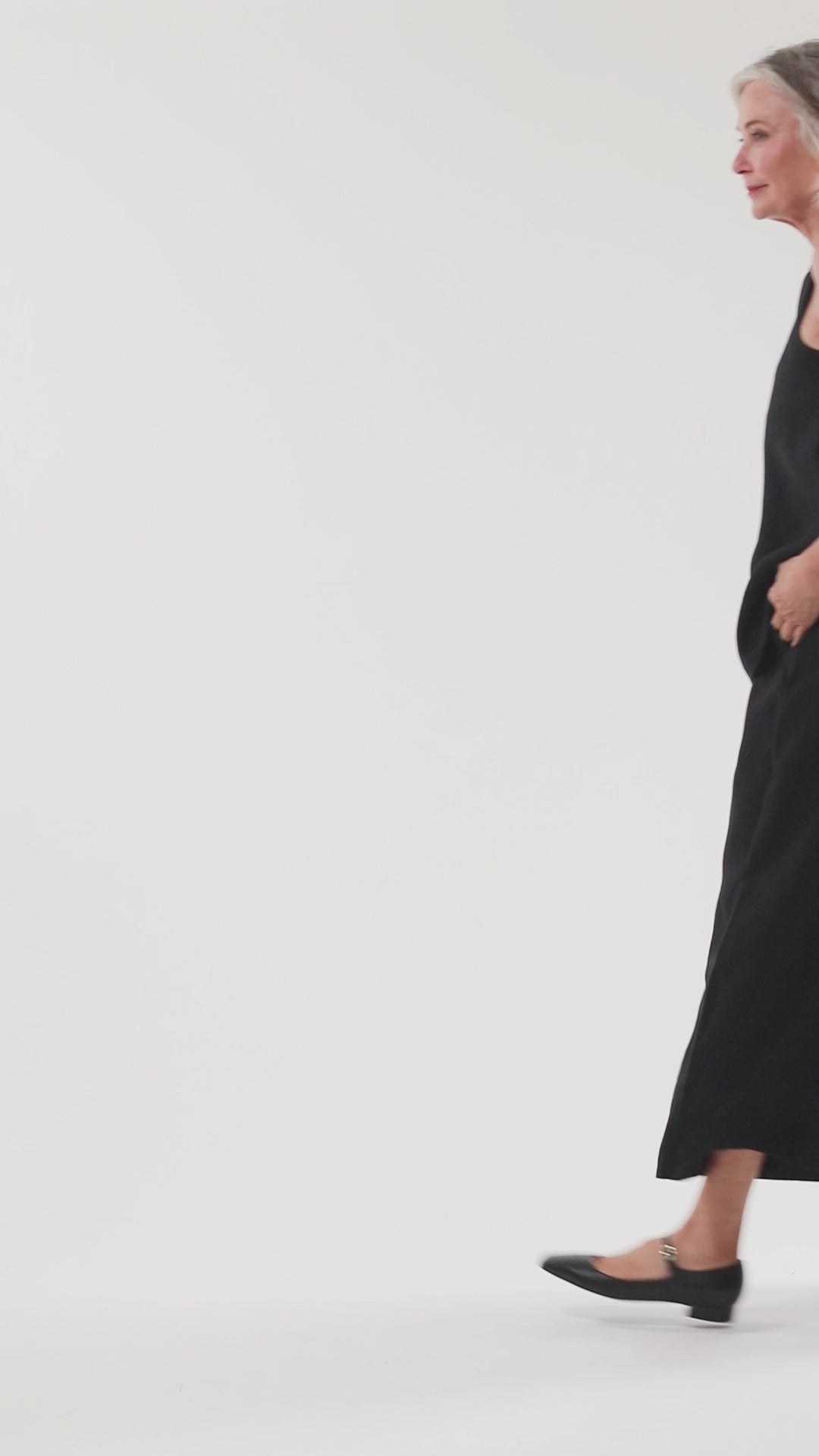 The Essentials Collection Lauri Culotte in black linen is floaty, elegant and incredibly comfortable. Elastic at the back provides a secure and comfortable fit. The front waistband is flat. Soft gathering from the waistband falls to a luxe, wide-legged pant that hits at a 7/8 length (on most).