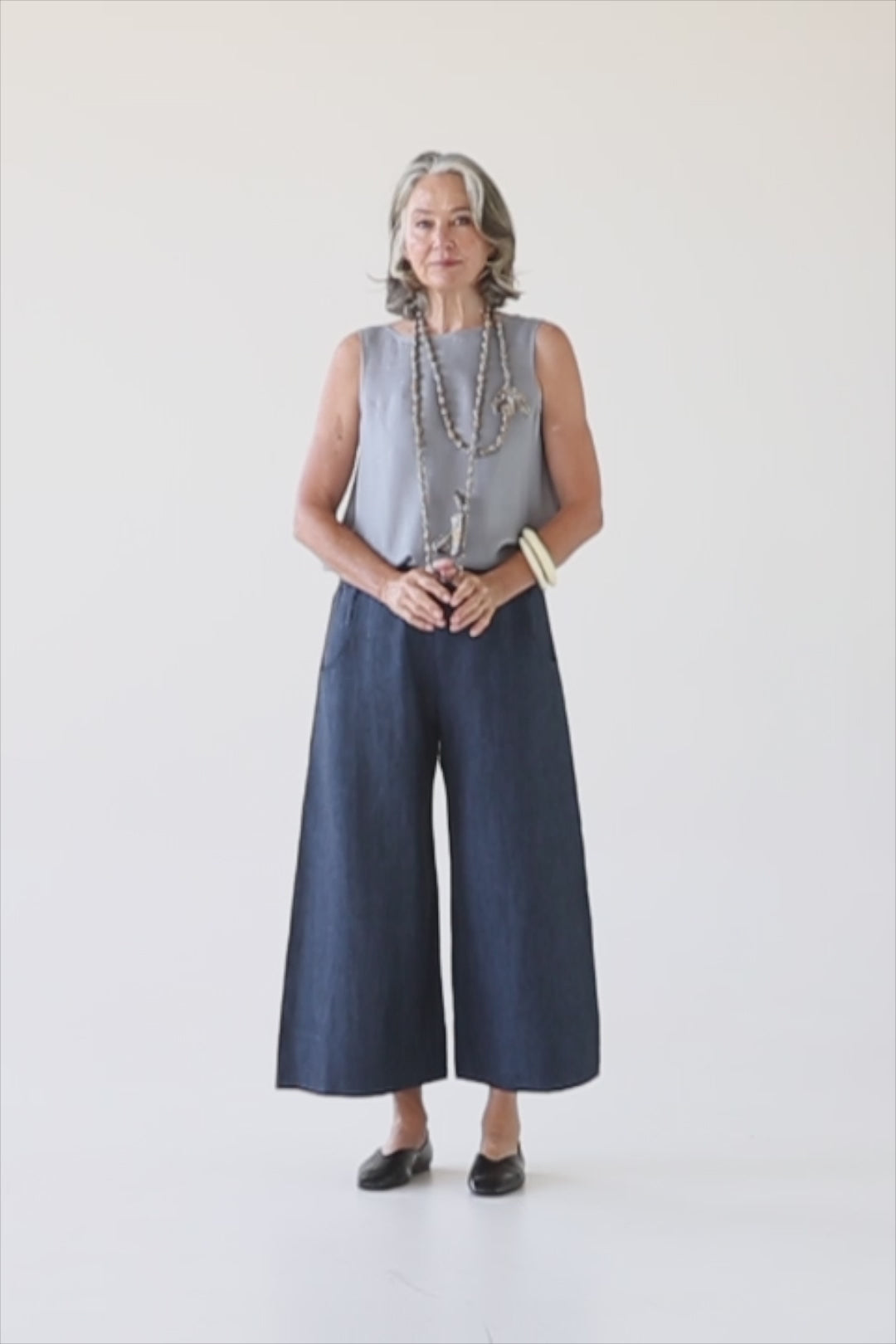 The wide, fully elasticated waistband offers comfort and flexible fit, while side slit front pockets and a single patch pocket at the back add thoughtful functionality. Equal parts relaxed and refined, the Oliver Pant is designed for effortless everyday wear.