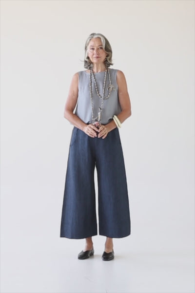 The Oliver Pant is smartly cut in a fluid and breathable midnight navy pure linen for a fresh and refined look. A best-selling ES silhouette, the Oliver features a subtly flared leg that falls to a flattering slightly cropped 7/8 length.