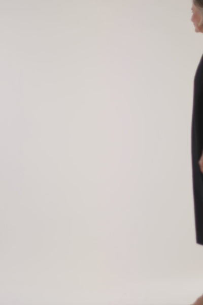 The Essentials Collection Ottie Dress in Black is a reversible design providing a choice of two necklines: rounded and v-neck. Gathered panel inserts under the arms provide just the right amount of fullness to the dress while the 3/4 length set in sleeves create a flattering silhouette. A dropped shoulder adds to the relaxed feel of this style. The simple rolled hem allows for easy adjustments to the length.