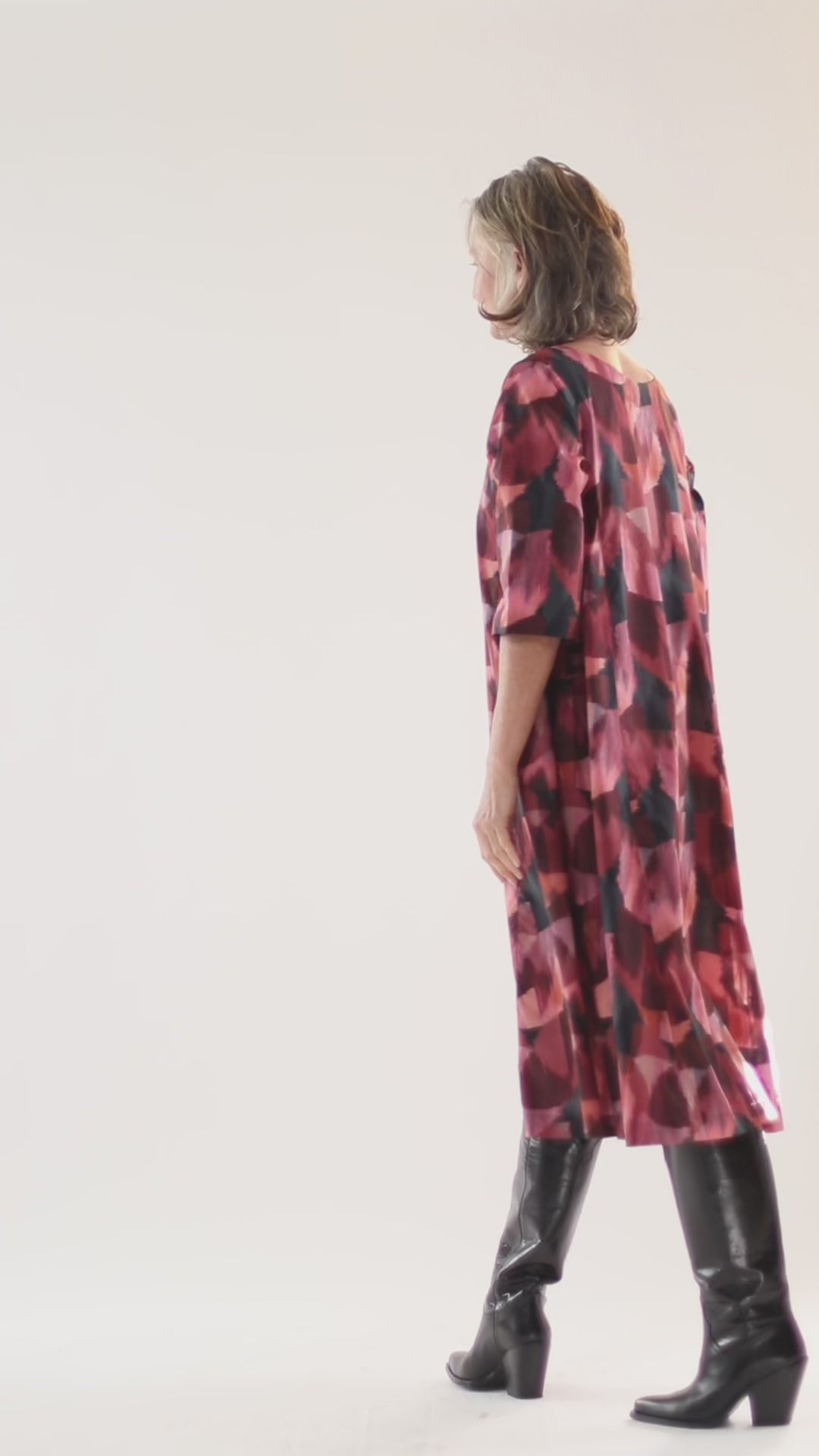 A dropped shoulder adds to the relaxed feel of this style. The simple rolled hem allows for easy adjustments to the length. This dress comes with a lovely cotton slip in a merlot colour. It's a perfect match to this Liberty fabric.