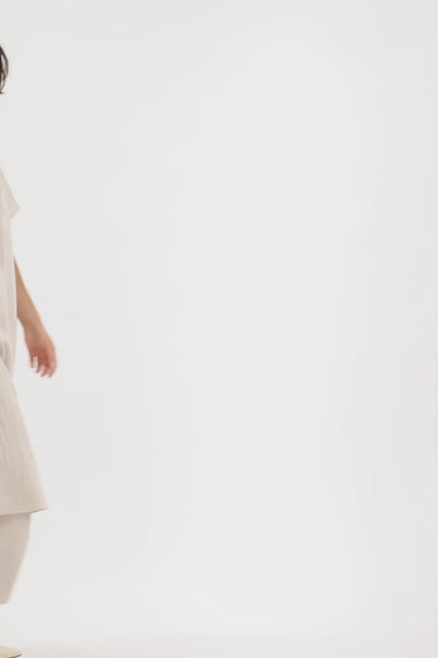 The Poppy Dress provides an elegant silhouette in an airy, textured Neutral Crush pure linen. The neckline is detailed with soft gathers that fall into a relaxed and contemporary shape.