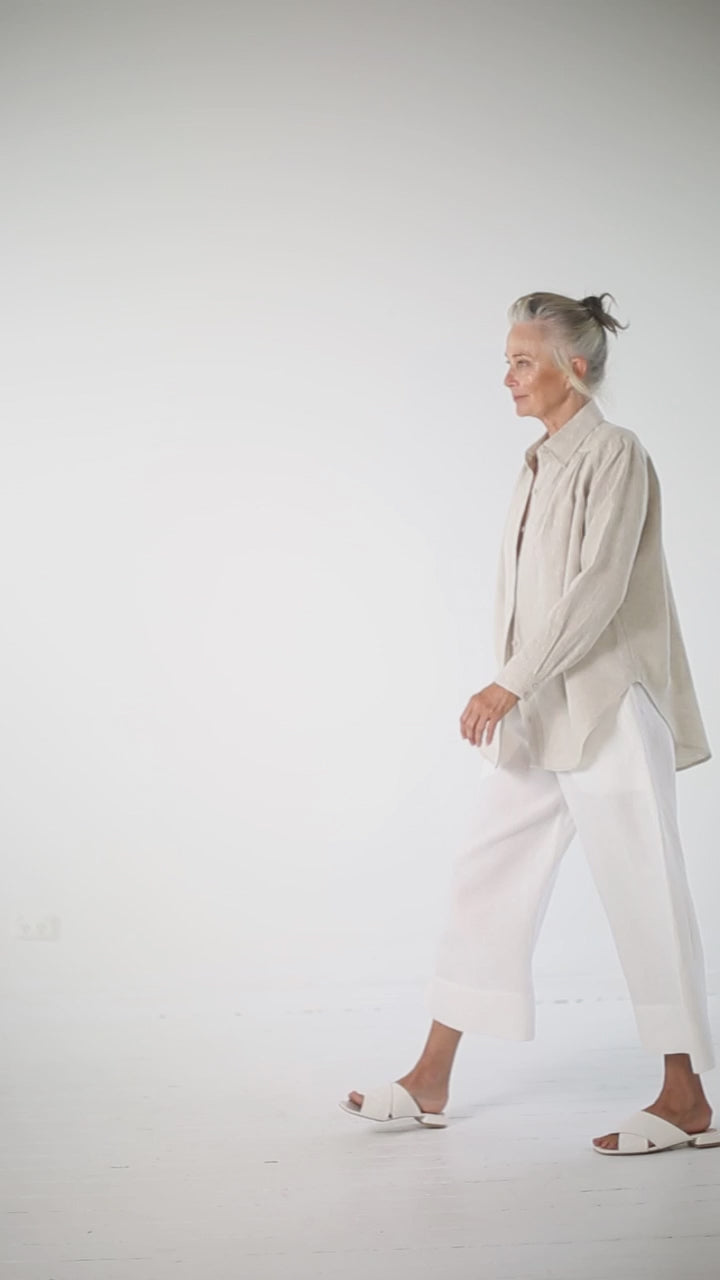 The Essentials Collection Rebecca Shirt is crafted from luxurious linen. This collared shirt features delicate gathering along the front and back yoke, with self-covered buttons adding a touch of sophistication. The hemline is artfully shaped, while buttoned cuffs add a refined finish.