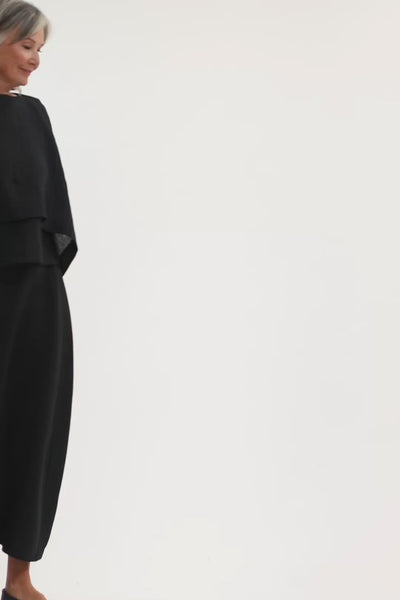 The Tommy Top is cut in this season’s Black Crush, a crushed pure linen with wonderful handfeel. Designed in a relaxed, cropped silhouette, it features a clean boat neckline, dropped shoulders that flow seamlessly into the sleeves, and a wide, boxy fit through the body.