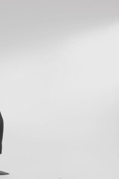 The Vittoria Jacket is a new silhouette, tailored from an Italian wool-blend bouclé in a mix of raven black and soft grey.