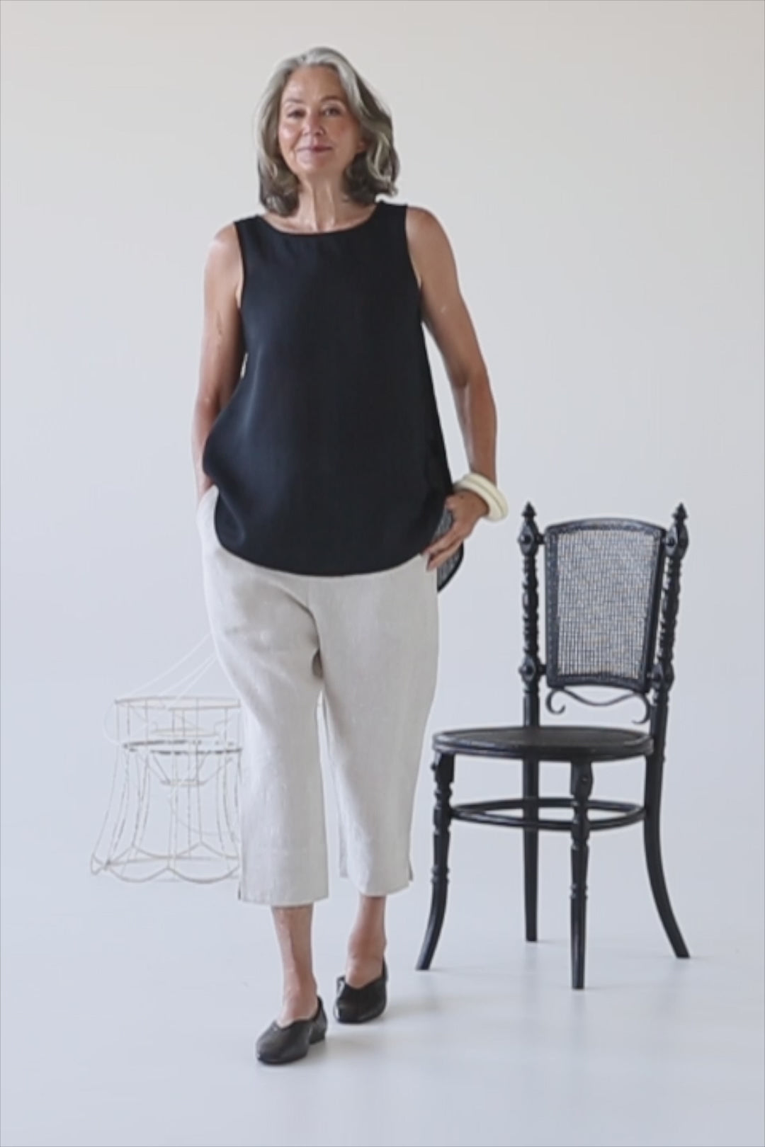 The Winnie Top is a refined wardrobe essential cut from a rich raven black pure linen.